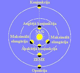 No redzamās kustības viedokļa izšķir ārējās un iekšējās planētas. Iekšējās planētas atrodas Saulei tuvāk nekā Zeme. Tās ir Venēra un Merkurs. Šīs planētas vienmēr redzamas pie debess ne pārāk tālu no Saules. Noteiktus planētu stāvokļus attiecībā pret Sauli sauc par konfigurācijām. Iekšējā planēta atrodas maksimālā elongācijā, kad tās leņķiskais attālums no Saules ir vislielākais, apakšējā konjunkcijā, kad tā atrodas starp Zemi un Sauli, un augšējā konjunkcijā, kad planēta atrodas aiz Saules. Iekšējās planētas vislabāk novērojamas maksimālās elongācijas tuvumā. Ārējās planētas atrodas tālāk no Saules nekā Zeme. To galvenās konfigurācijas ir, pirmkārt, opozīcija, kad Zeme atrodas starp planētu un Sauli. Tad attālums starp Zemi un planētu ir vismazākais, planēta atrodas pretējā pusē Saulei un tās novērošanas apstākļi ir vislabākie. Otra ārējo planētu konfigurācija ir konjunkcija, kad planēta atrodas aiz Saules, vistālāk no Zemes, un nav redzama.
