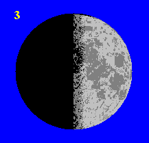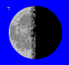 Apmēram 22 dienas pēc jaunmēness iestājas pēdējais ceturksnis un Mēness ir redzams kā pusaplis ar izliekumu uz kreiso pusi |