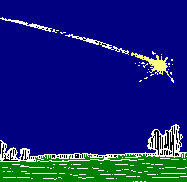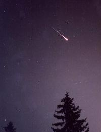 Spožs Zemes mākslīgais pavadonis, kas fotogrāfijā atgādina meteoru. D. Bekera foto. 35 kbĻoti spoža bolīda zīmējums. 3 kb