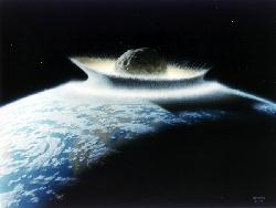Milzīga meteorīta krišana uz Zemes mākslinieka skatījumā. NASA attēls. 81 kb