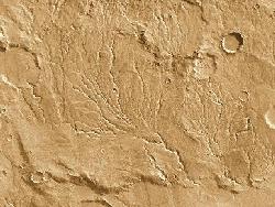 | Marsa virsmas fragments. Redzama gravu sistēma un meteorītu krāteri. NASA/JPL attēls. 75 kb | Marsa uzbūve. 19 kb |
