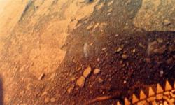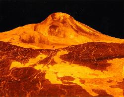 | Venēras kalns. Attēls veidots pēc radiolokācijas datiem. Izstiepums pa vertikāli pārspīlēts. NASA/JPL attēls. 123 kb | Venēras virsmas attēls, ko ieguvusi Krievijas starpplanētu zonde Venera. 40 kb |